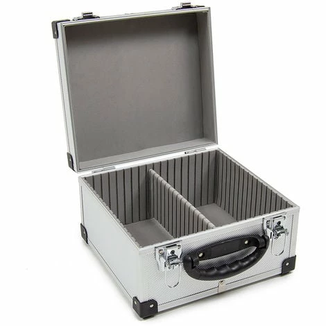 Complete with carry handle and lockable clasps, this storage case has a removable lid and storage dividers with space for 40 CD’s