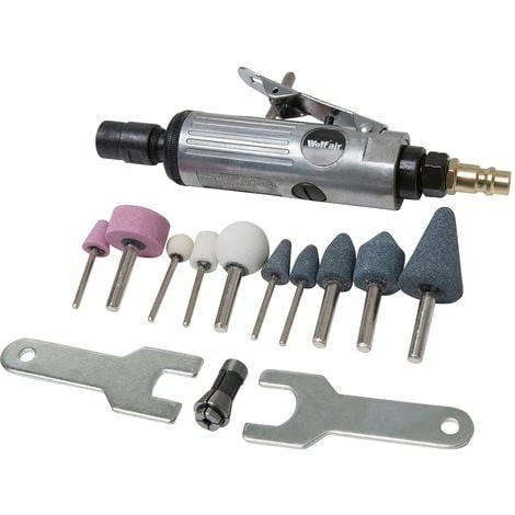 Supplied complete with 10 stones & 2 collets, this tool is great for grinding, polishing, deburring and smoothing sharp edges. It uses standard 1/8” and 1/4” shank grindstones.